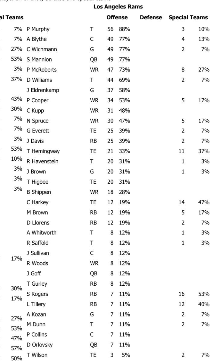 Rams OL allowed pressure on 9 of 31 (29%) passes on Saturday. Starters allowed none on 4.