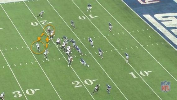Worth noting: This is a classic case of Austin’s presence making an impact without him touching the ball. It’s evident in watching Jaguars middle linebacker Telvin Smith (circled in red). Smith follows Austin to the right side of the field, and it creates an opening up the middle that Everett bursts through for his first career touchdown.