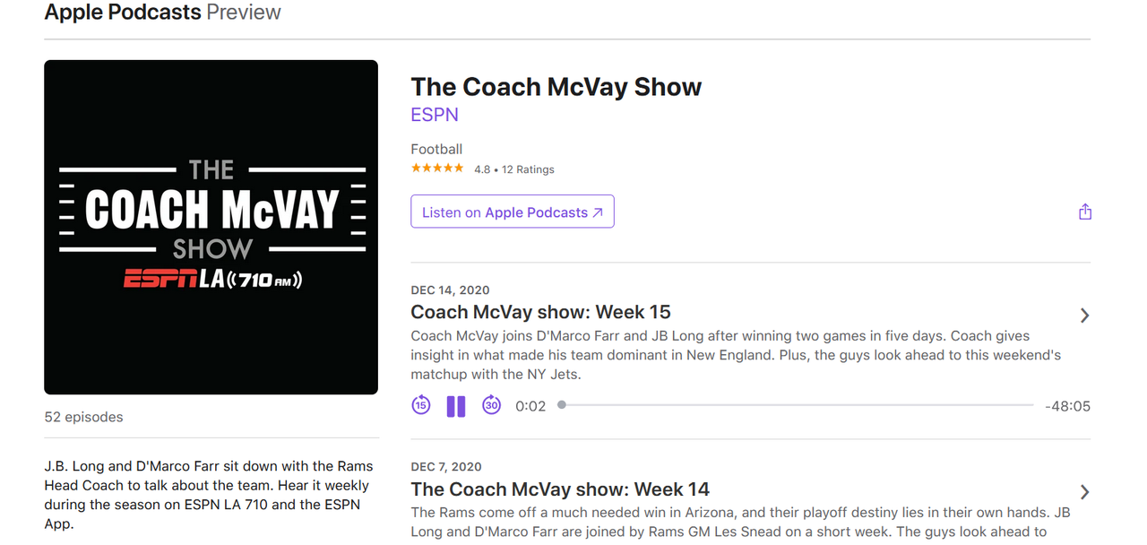 Recent Forum Topics › Forums › The Rams Huddle › Coach McVay show: Week 15