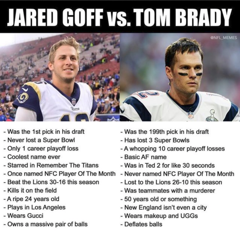 Brady was 24 at the time, and that victory launched him on a path that made him one of the sports world’s biggest celebrities. Goff, the same age now as Brady was then, knows that a victory over the Patriots could be life-changing.
