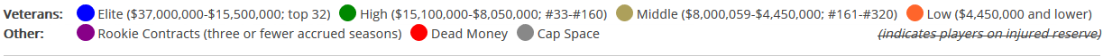 Right now they have no blue players and the top 10 take up 55%. I think Goff will make a difference. You know his fifth year option will be ~$25 million.