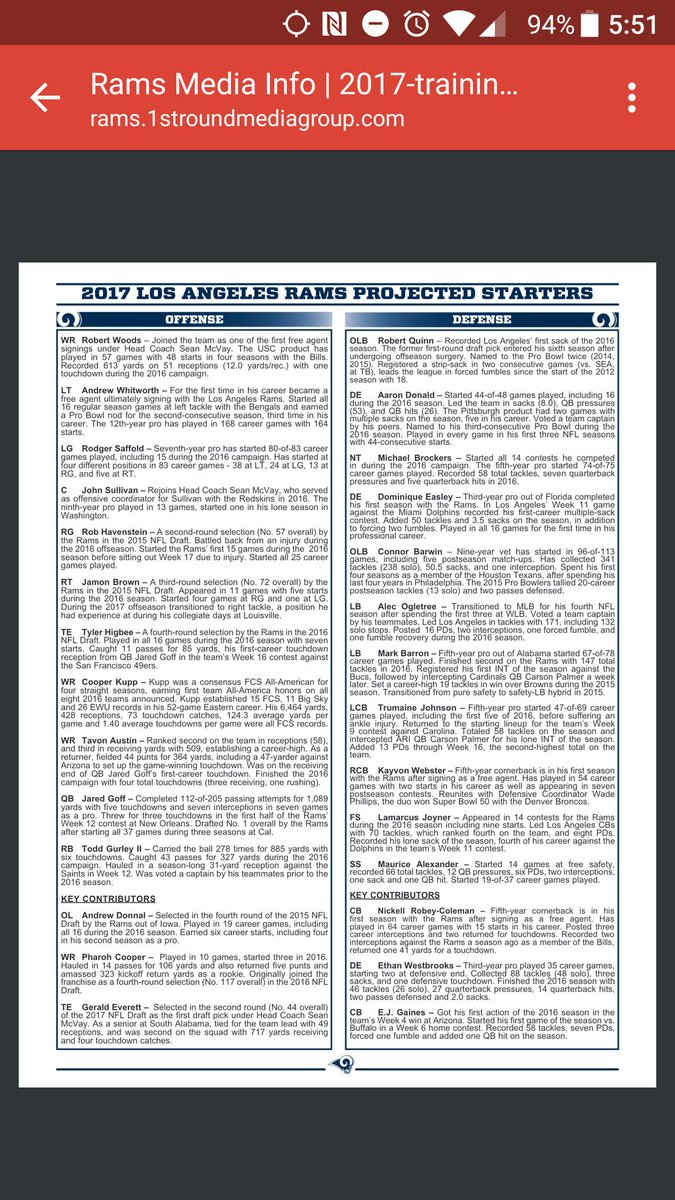 Recent Forum Topics › Forums › The Rams Huddle › Rams give unofficial list of projected preseason starters in media release