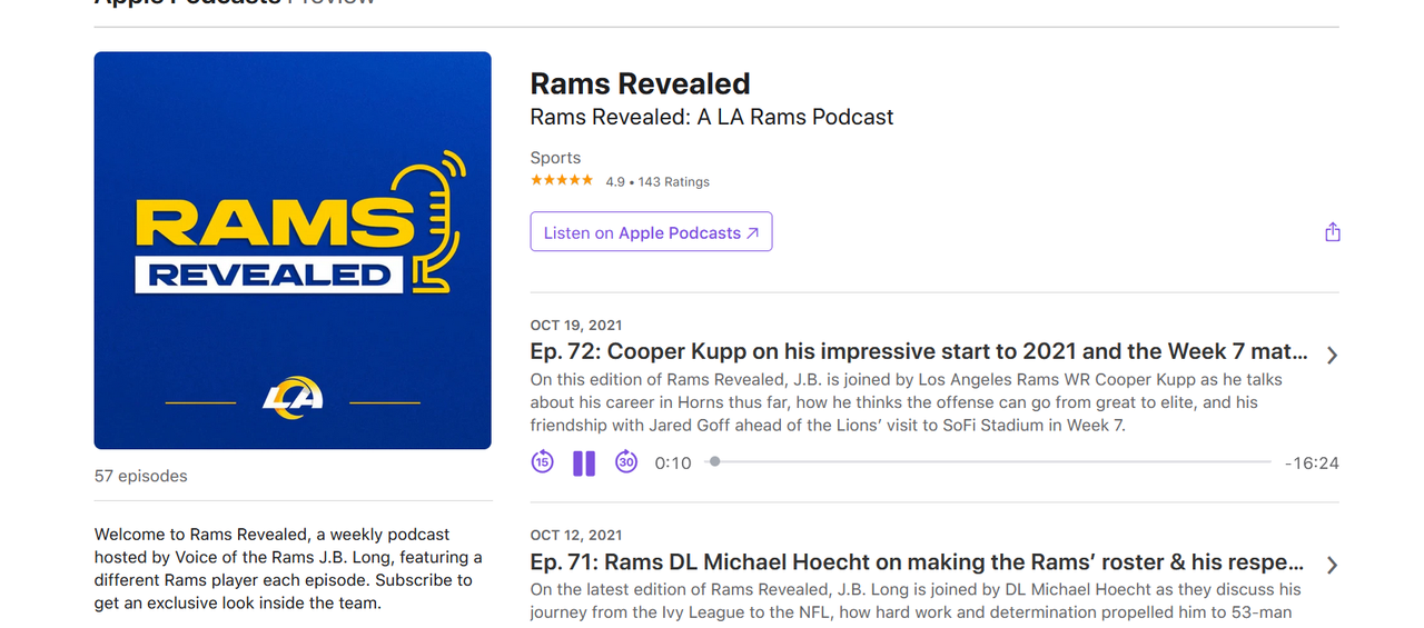On this edition of Rams Revealed, J.B. is joined by Los Angeles Rams WR Cooper Kupp as he talks about his career in Horns thus far, how he thinks the offense can go from great to elite, and his friendship with Jared Goff ahead of the Lions’ visit to SoFi Stadium in Week 7.