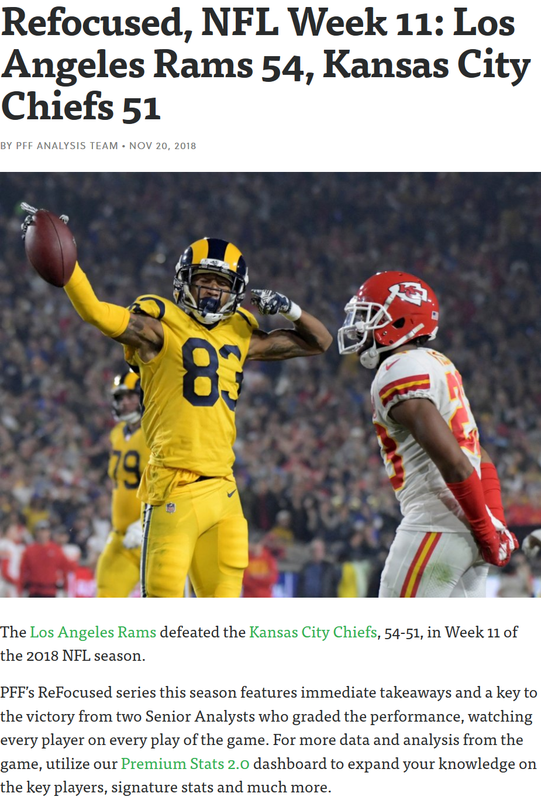 znModerator.@greggrosenthal's Week 11 Debrief: NFL's 2018 offensive revolution reaches its apex in Rams' historic win over Chiefshttps://t.co/JCFtj3wal5 pic.twitter.com/6xjAogX9zg