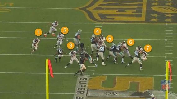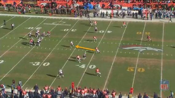His job on this play is to keep a running back from catching the ball. No defense ever asks a nose tackle to play like a cornerback. The Broncos are not like everyone else.