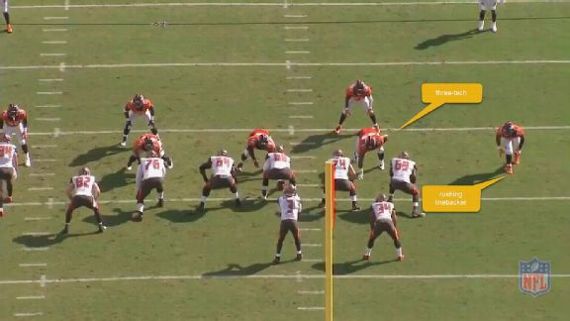 Those players are listed at different positions on the roster, but have identical roles from the exact same alignment on the play in this situation. The distinction between linebacker and defensive end is far less meaningful in the world of nickel defense than that between edge defender, interior defender and off-the-ball linebacker, which is why the Pro-Bowl ballot will remain broken until it adopts that shift in player designation.